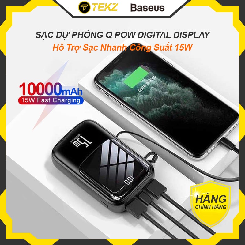 Pin Sạc Dự Phòng 10000mAh Baseus Q Pow Digital Display Hỗ Trợ Sạc Nhanh 3A/15W Dành Cho iPhone, iPad, Airpod