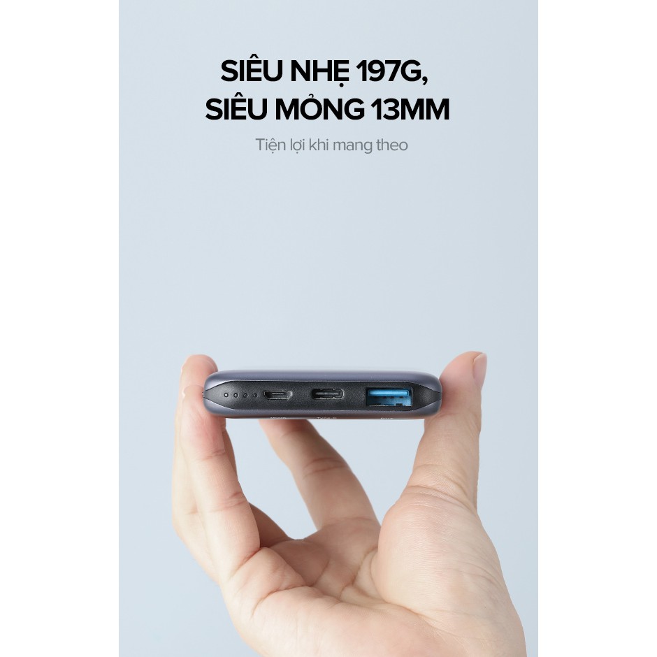 Dung lượng pin lớn 10000mAhmm siêu nhẹ chỉ 197gam. Cổng sạc chuẩn PD hỗ trợ tự sạc cho pin dự phòng (sử dụng kèm củ sạc nhanh PD cùng công suất lớn 20W) chỉ cần 3.5h để sạc đầy pin sạc dự phòng.