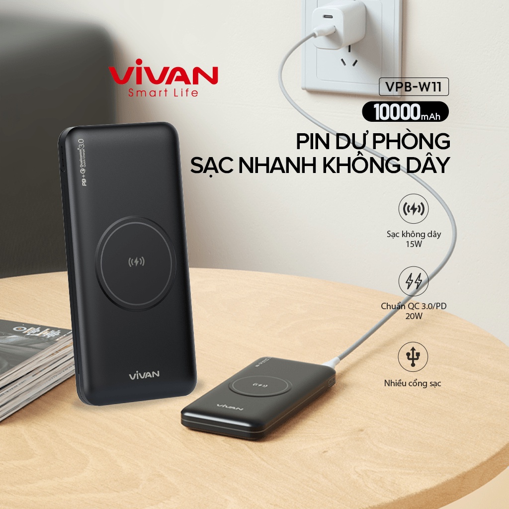 Giới thiệu Pin Sạc Dự Phòng Không Dây 10000mAh VIVAN VPB-W11 Công Suất Lớn 20W Hỗ Trợ Sạc Nhanh QC 3.0 PD Của Android iOS