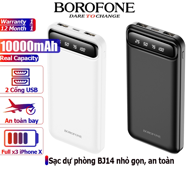 Pin sạc dự phòng 10000mAh BOROPHONE BJ14 có đèn báo LED, 2 cổng ra USB - Chính hãng