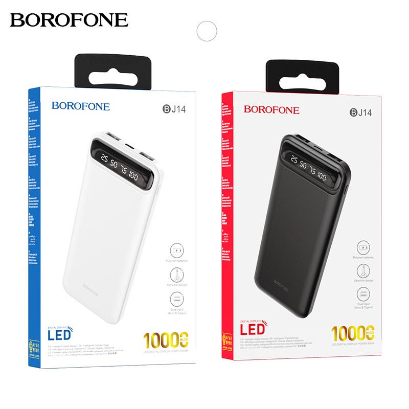 Pin Sạc Dự Phòng BOROFONE BJ14, 10000mah, Micro USB / USB C, 2 cổng sạc 2A, Đèn Led hiển thị dung lượng pin là một sản phẩm của BOROFONE đến từ Hongkong, đây là thương hiệu chuyên sản xuất các phụ kiện dành cho điện thoại với các mức giá ở tầm trung nên được rất nhiều lựa chọn và tin dùng.