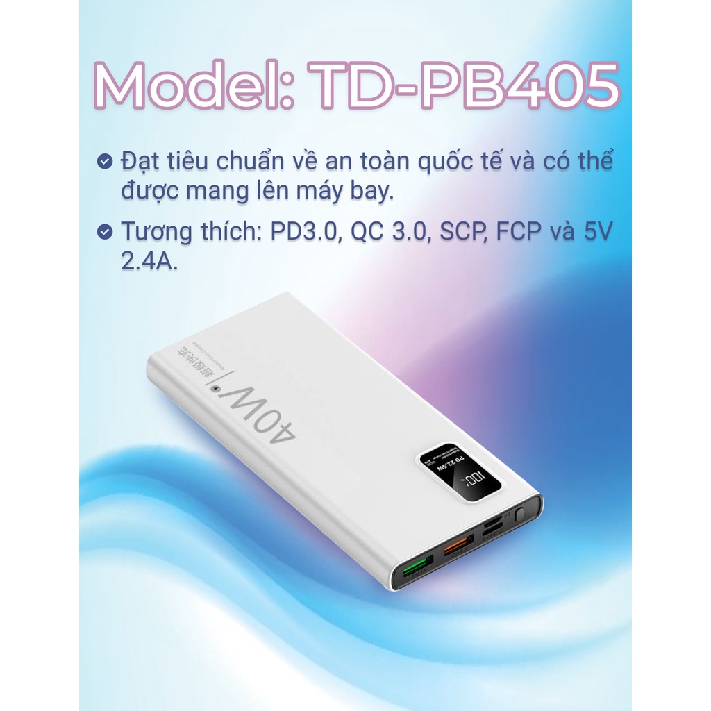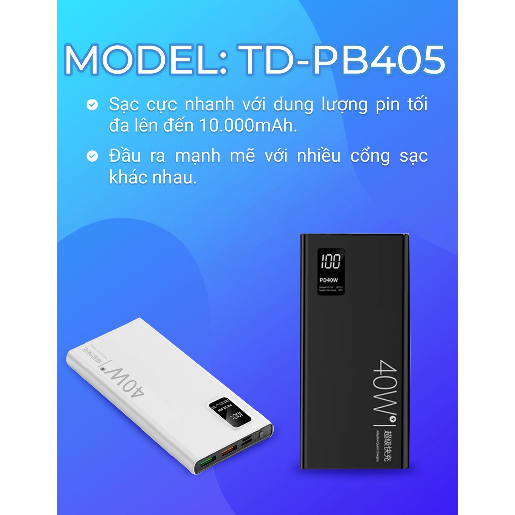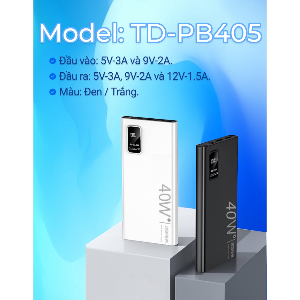 Điện Thoại & Phụ Kiện > Phụ kiện > Sạc dự phòng & Pin > Sạc dự phòng || Pin Sạc Dự Phòng 10000mah / 20000mah - 40w - THE DEOSD - TD-PB405Còn hàng