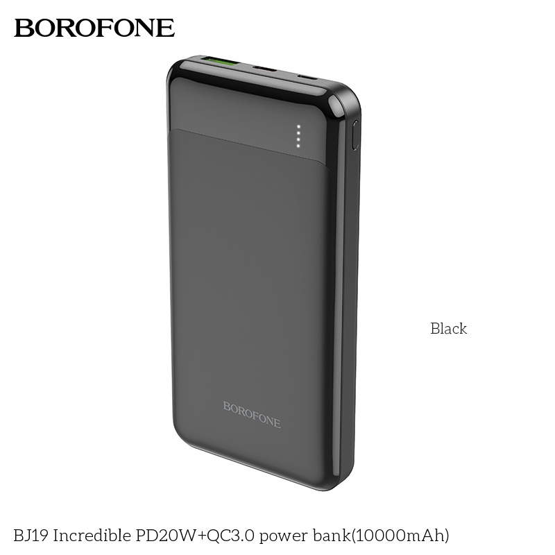 Pin Sạc Dự Phòng BOROFONE BJ19, 10000mah, Micro USB / USB C, 1 cổng Type-C hỗ trợ sạc nhanh PD20W và 1 cổng sạc USB 18W, Đèn Led hiển thị dung lượng pin là một sản phẩm của BOROFONE đến từ Hongkong, đây là thương hiệu chuyên sản xuất các phụ kiện dành cho điện thoại với các mức giá ở tầm trung nên được rất nhiều lựa chọn và tin dùng.