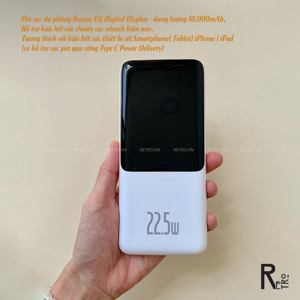 𝐏𝐢𝐧 𝐬𝐚̣𝐜 𝐝𝐮̛̣ 𝐩𝐡𝐨̀𝐧𝐠 𝐁𝐚𝐬𝐞𝐮𝐬 𝐄𝐥𝐟 𝐃𝐢𝐠𝐢𝐭𝐚𝐥 𝐃𝐢𝐬𝐩𝐥𝐚𝐲 𝐜𝐨́ 𝐝𝐮𝐧𝐠 𝐥𝐮̛𝐨̛̣𝐧𝐠 𝟏𝟎,𝟎𝟎𝟎𝐦𝐀𝐡Hỗ trợ hầu hết các chuẩn sạc nhanh hiện nay, tương thích với hầu hết các thiết bị số hiện nay từ Smartphone/ Tablet/ iPhone / iPad (có hỗ trợ sạc pin qua cổng Type C Power Delivery)..