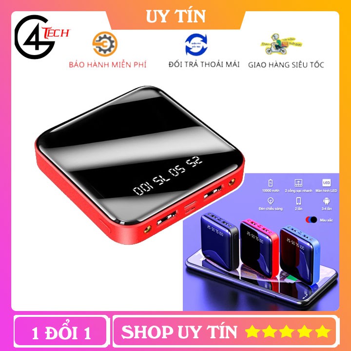 Pin Sạc Dự Phòng 10000mAh Polymer mini nhỏ gọn tiện lợi kiểu dáng vuông cầm theo sạc nhanh, tương thích mọi điện thoại