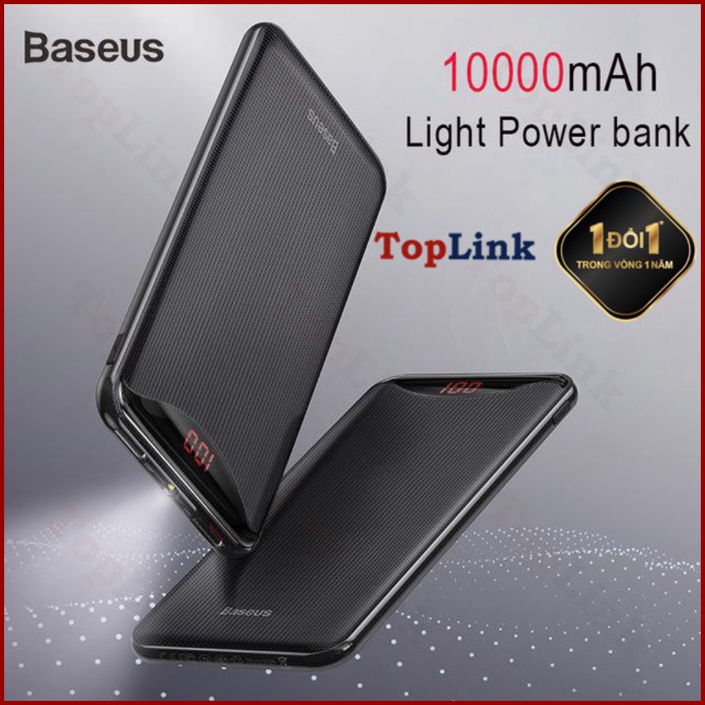 Pin Sạc Dự Phòng 10000mah Baseus Với Màn Hình Hiển Thị Phần Trăm Pin Và 2 Cổng Ra USB - TopLink