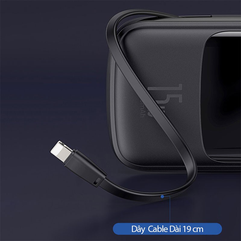 Pin Sạc Dự Phòng 10000mAh Baseus QPow Digital Display Tích Hợp Cáp Lightning Sạc Nhanh 15W Cho iPhone iPad Airpod