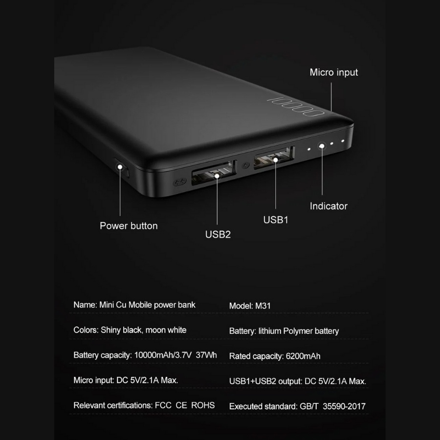 ✔ Pin sạc dự phòng nhỏ gọn Baseus Mini Cu có dung lượng 10,000 mAh (37Wh) tương thích với tất cả các smartphone & tablet hiện nay .