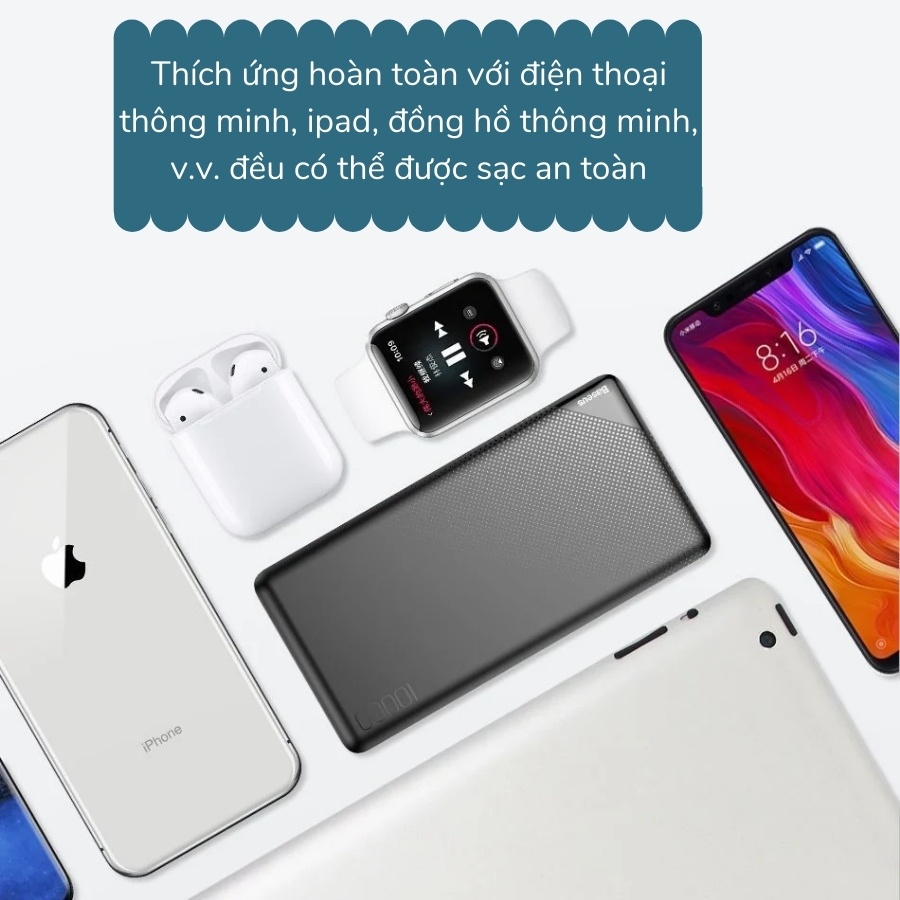 ✔ Bề mặt được làm bằng chất liệu ABS + PC cao cấp cho bề mặt cực êm tay, chống bám vân tay . Sản phẩm còn được tích hợp màn hình LCD tiện dụng và đẹp mắt cho biết dung lượng pin còn lại .