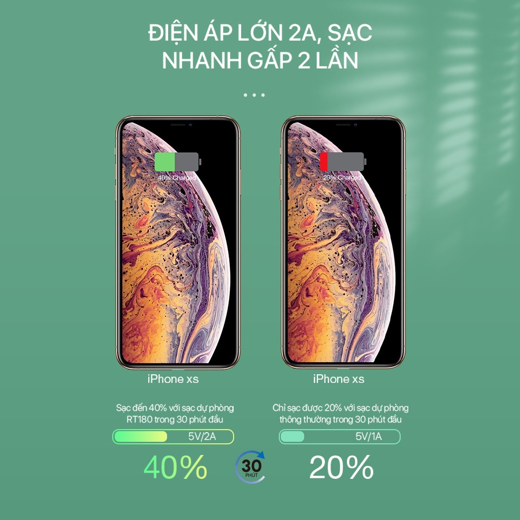 Pin Sạc Dự Phòng 10000mAh ROBOT RT180 1 Output USB & 2 Input Micro Type-C Hàng Chính Hãng Bảo Hành 12 Tháng 1 Đổi 1