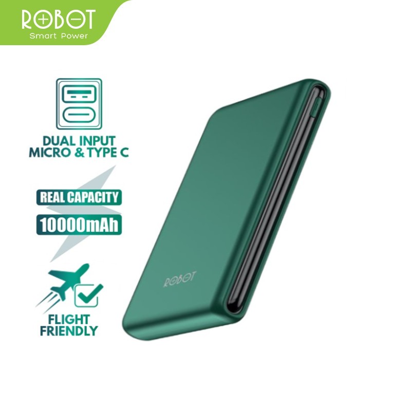 Pin Sạc Dự Phòng 10000mAh ROBOT RT180 Thiết Kế Nhỏ Gọn 1 Output USB & 2 Input Micro/Type-C - BẢO HÀNH 12 THÁNG 1 ĐỔI 1Model : RT180