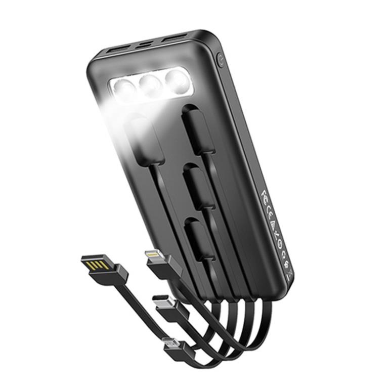 Hoco J77 được thiết kế cực kỳ độc đáo, có sẵn 3 dây sạc ra đi liền với pin nên có thể sạc được tất cả các thiết bị và còn có 2 cổng USB => có thể sạc cùng lúc 5 thiết bị, ngoài ra để sạc cho pin thì đã có sẵn 1 cáp USB-A liền pin, chỉ cần cắm vào củ sạc hoặc ổ điện có cổng USB là có thể sạc được, cực kỳ độc đáo và tiện lợi.