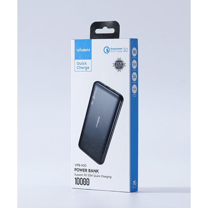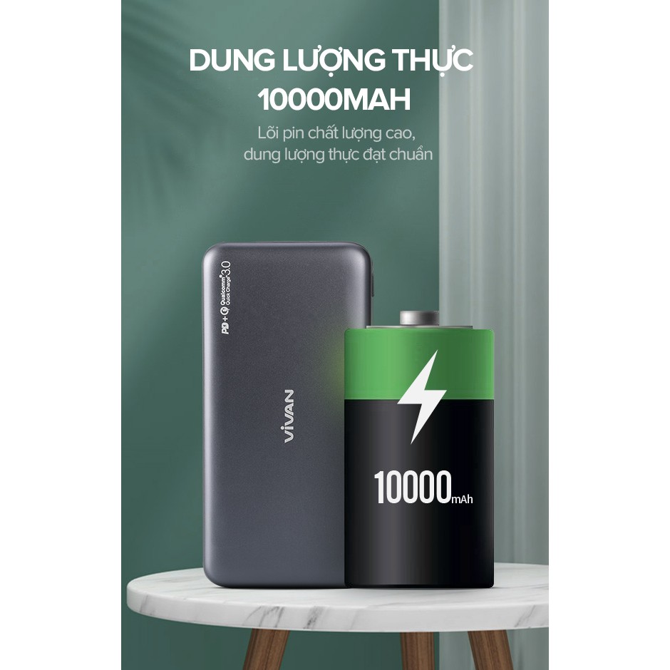 Pin Sạc Dự Phòng 10000mAh VIVAN VPB-N10 20W Quick Charge PD/QC 3.0 2 Output BẢO HÀNH 12 THÁNG 1 ĐỔI 1Sạc nhanh chuẩn PD/QC 3.0