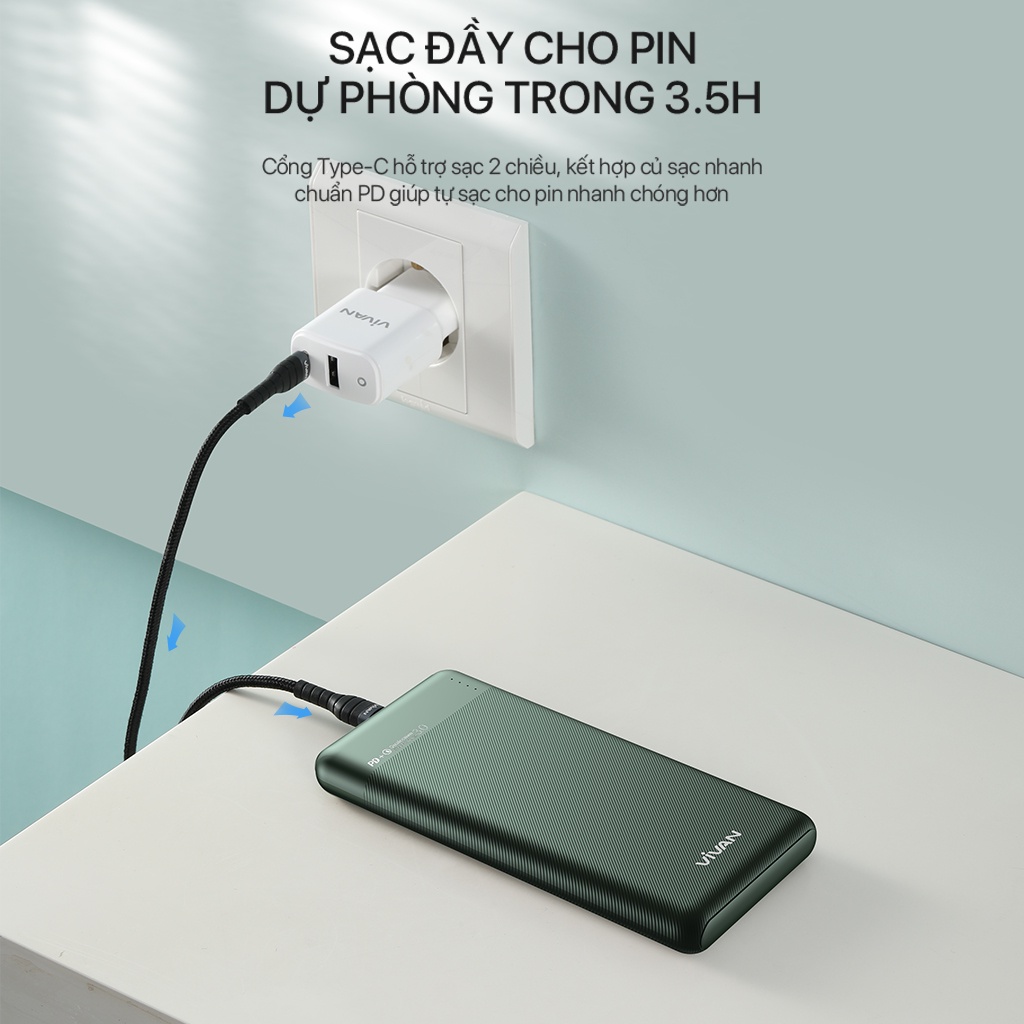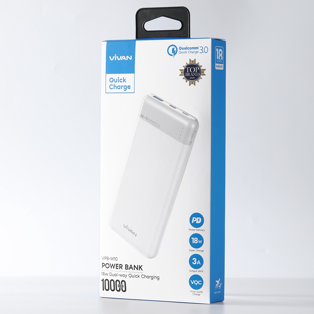 Pin Sạc Dự Phòng 10000mAh VIVAN VPB-M10 Sạc Nhanh Chuẩn PD/QC3.0 18W 2 Output 2 Input Hàng Chính Hãng Bảo Hành 12 Tháng