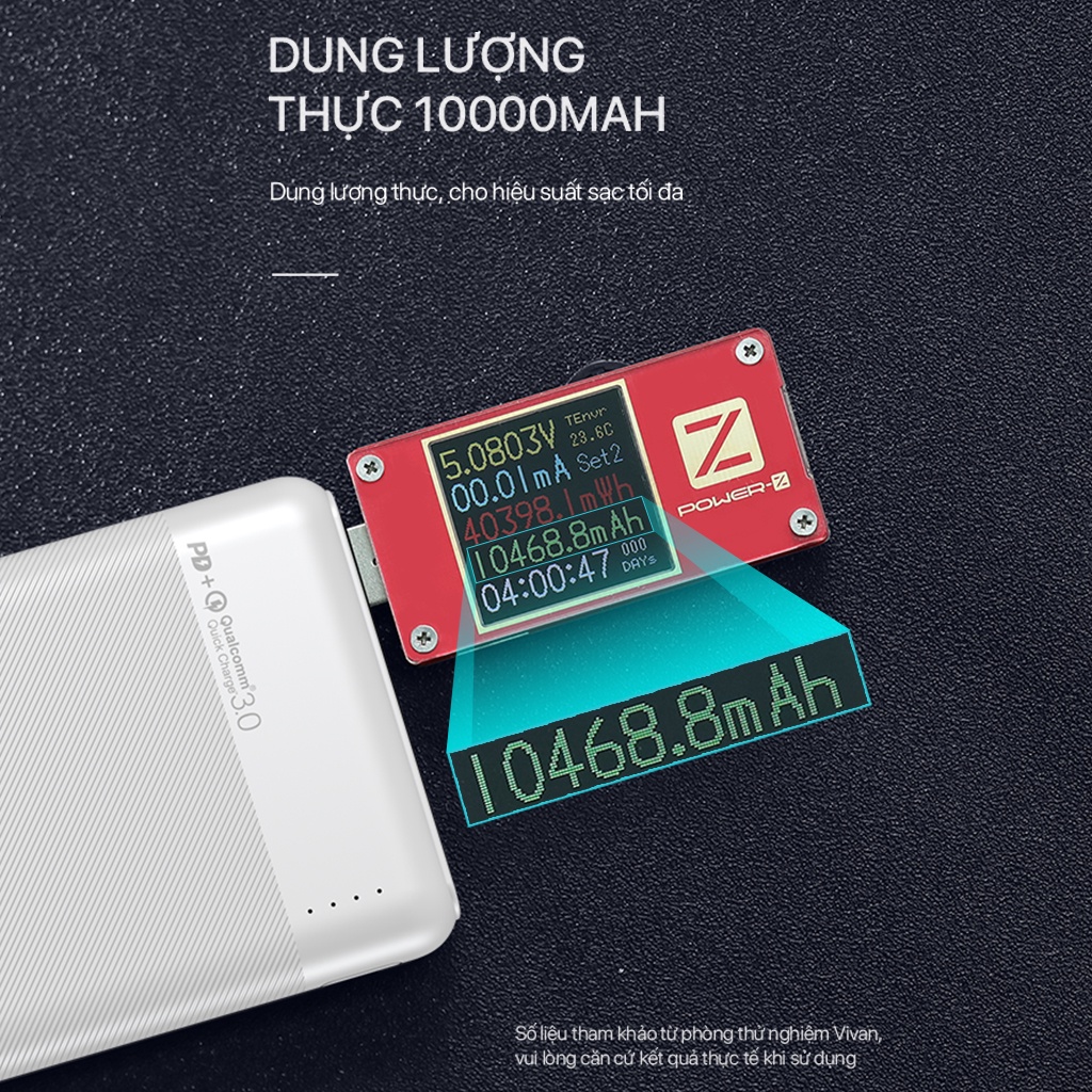 ✔ Sạc dự phòng VPB-M10 sạc đầy trong 190 phút khi sử dụng củ sạc nhanh 18W qua cổng Type-C hoặc Micro.