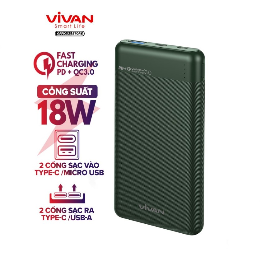 Pin Sạc Dự Phòng 10000mAh VIVAN VPB-M10 Sạc Nhanh Chuẩn PD/QC3.0 18W 2 Output 2 Input - BẢO HÀNH 12 THÁNG 1 ĐỔI 1Thương hiệu: VIVAN