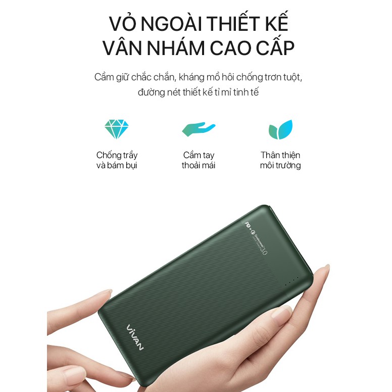 Pin Sạc Dự Phòng 10000mAh VIVAN VPB-M10 Sạc Nhanh Chuẩn PD/QC3.0 18W 2 Output 2 Input - BẢO HÀNH 12 THÁNG 1 ĐỔI 1