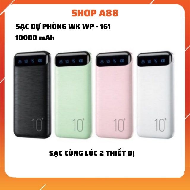 Giới thiệu Sạc pin dự phòng không dây 10000mAh WK WP-161, Sạc nhanh tích hợp màn hình đèn Led phụ kiện điện thoại A88