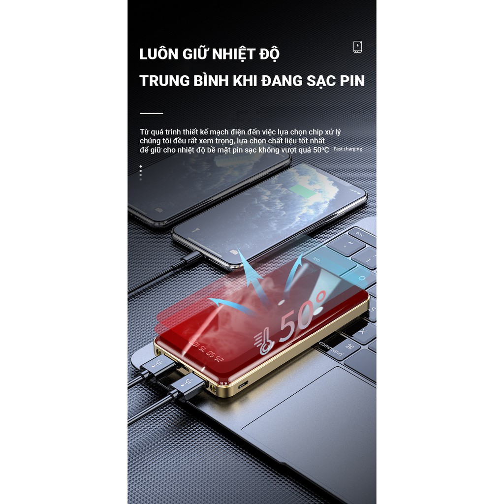 Pin sạc dự phòng 15000mAh Cát Thái Y11D thiết kế mặt kính sang trọng, sạc nhanh 2.1A, mỏng nhẹ nhỏ gọn