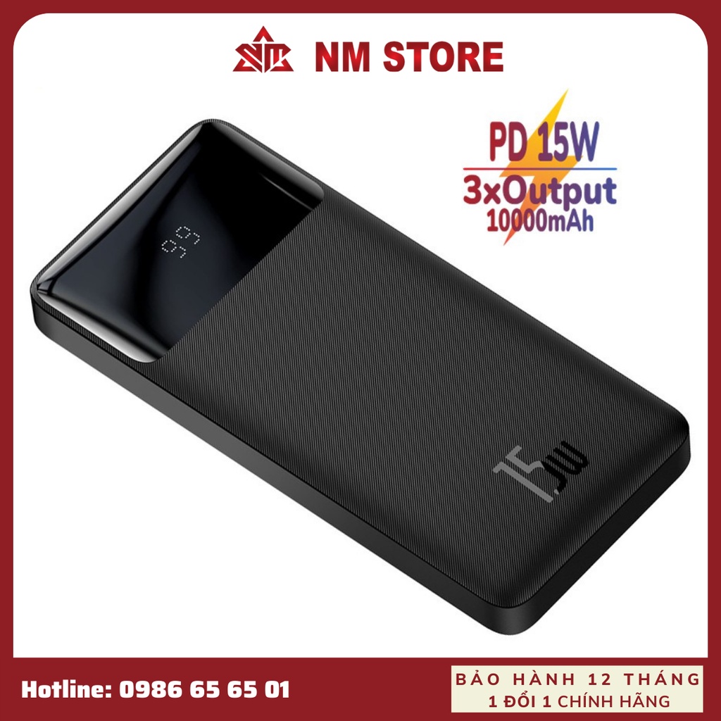 Điện Thoại & Phụ Kiện > Phụ kiện > Sạc dự phòng & Pin > Sạc dự phòng || Pin Sạc Dự Phòng 15W Baseus dung lượng 10000mAh, 3 Output, màn hình LCD hiện thị pin, thân vỏ nhámCòn hàng
