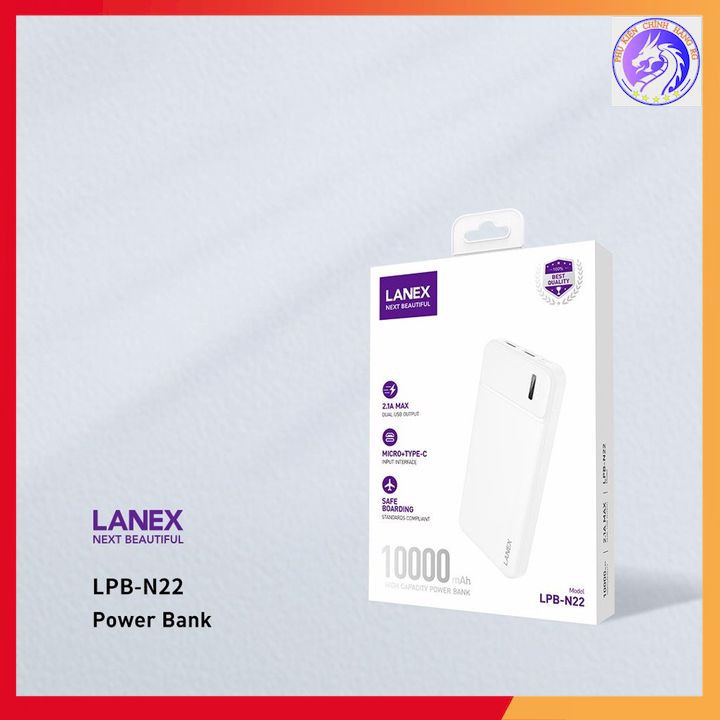 Điện Thoại & Phụ Kiện > Pin sạc dự phòng > 5000 - 10000mAh || Pin Sạc Dự Phòng 2 Cổng USB 2.1A Dung Lượng 10000 MAH Lanex LBP - N22 - Có Đèn LedCòn hàng