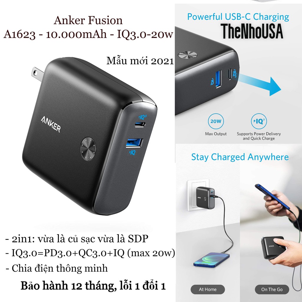 Điện Thoại & Phụ Kiện > Phụ kiện > Sạc dự phòng & Pin > Sạc dự phòng || Pin sạc dự phòng 2 in 1 Anker Powercore Fusion 10.000 - 20W - A1623 [BH 12T]Còn hàng