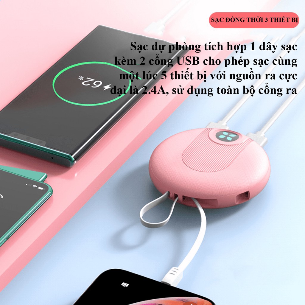Đầu ra có cổng Type C, Lightning, Micro USB và 1 cổng USB vô cùng tiện lợi, không cần dây sạc nhiều vướng víu
