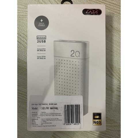 Pin sạc dự phòng 20.000 mah caza n03 vỏ kim loại chính hãng ( 2 màu trắng , đen ) pd0049Sau khi đặt hàng thành công, Quý khách nhớ giữ điện thoại để shop và bên vận chuyển liên hệ giao hàng.