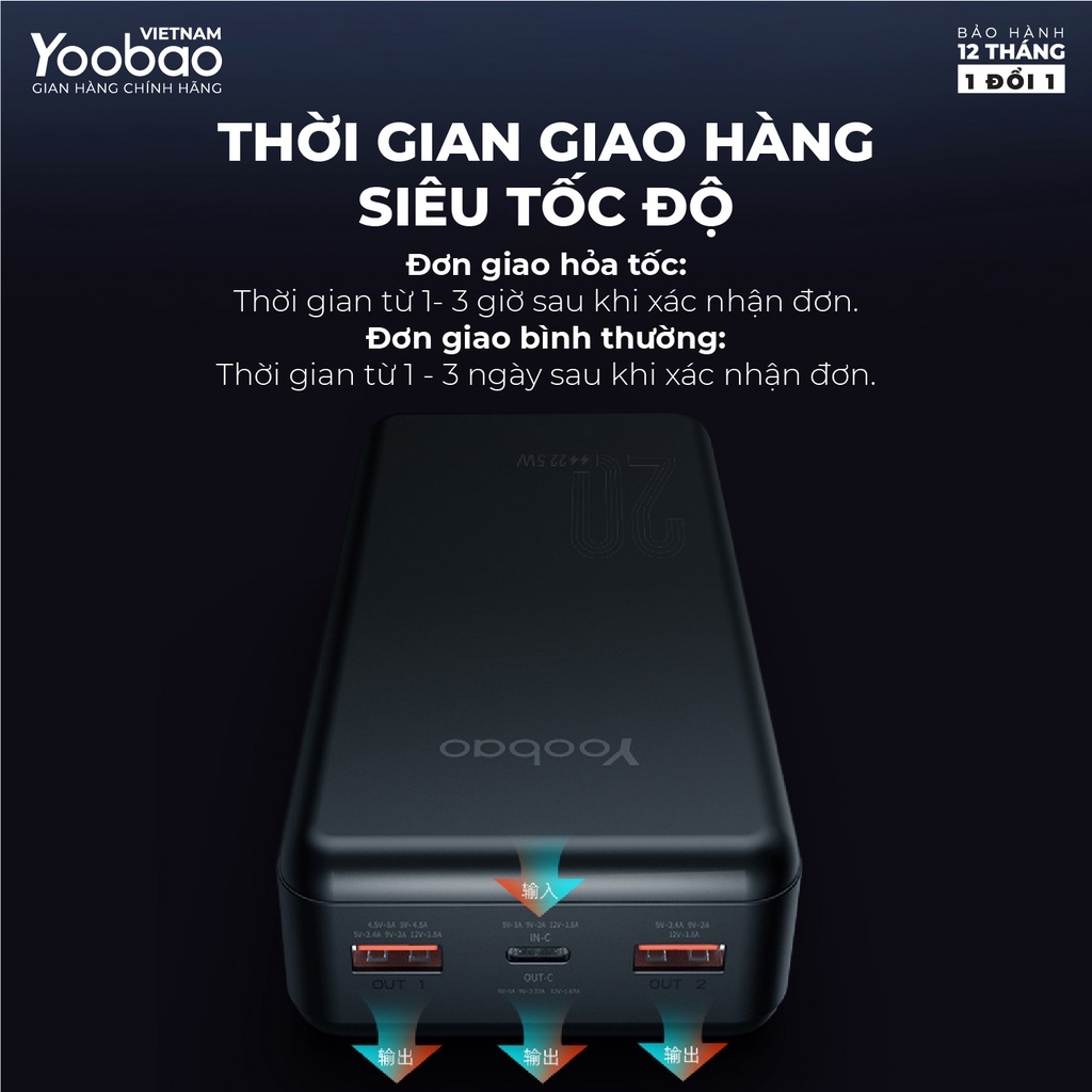 Điện Thoại & Phụ Kiện > Phụ kiện > Sạc dự phòng & Pin > Sạc dự phòng || Pin sạc dự phòng 20000mAh D20Q Yoobao PD20, hỗ trợ sạc nhanh công suất 22.5W, dùng cho Iphone 11,12, HuaweiCòn hàng