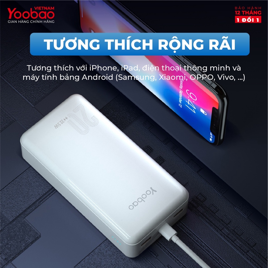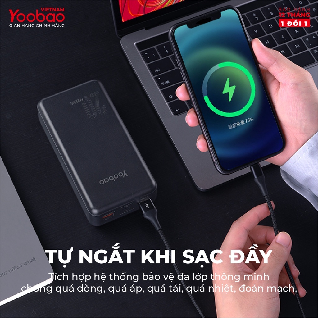Pin sạc dự phòng 20000mAh D20Q Yoobao PD20, hỗ trợ sạc nhanh công suất 22.5W, dùng cho Iphone 11,12, Huawei