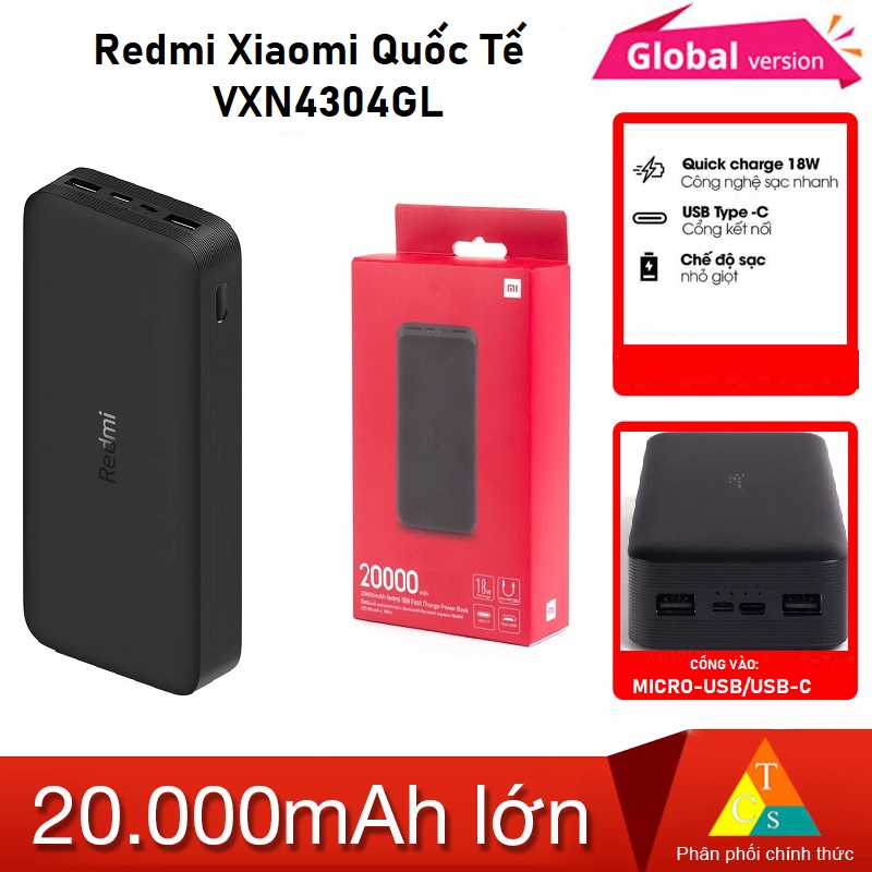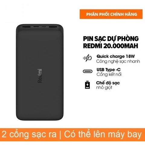 Điện Thoại & Phụ Kiện > Phụ kiện > Sạc dự phòng & Pin > Sạc dự phòng || Pin sạc dự phòng 20000mAh Xiaomi Redmi VXN4304GLCòn hàng