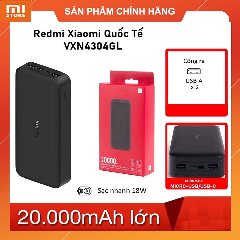 #Pin_dự_phòng_20000mAh_Redmi_Xiaomi_Quốc_Tế_VXN4304GL #sạc_dự_phòng #pin_sạc #tainghe #máy_cạo_râu #tông_đơ #Type_C #Micro_USB #USB_A #sạc_nhanh #10000mah #20000mah #chính_hãng #xiaomi #redmi #mistorehanoi