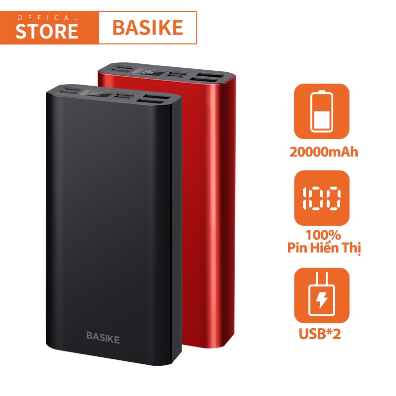 Giới thiệu Pin Sạc Dự Phòng 20000mAh BASIKE 2 Output USB & 2 Input Micro/Type-C - LED hiển thị kỹ thuật số pin