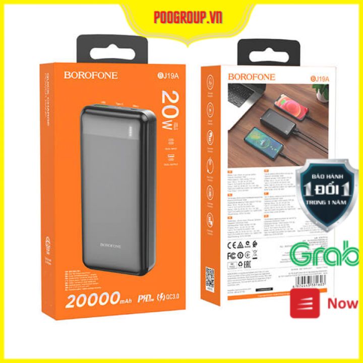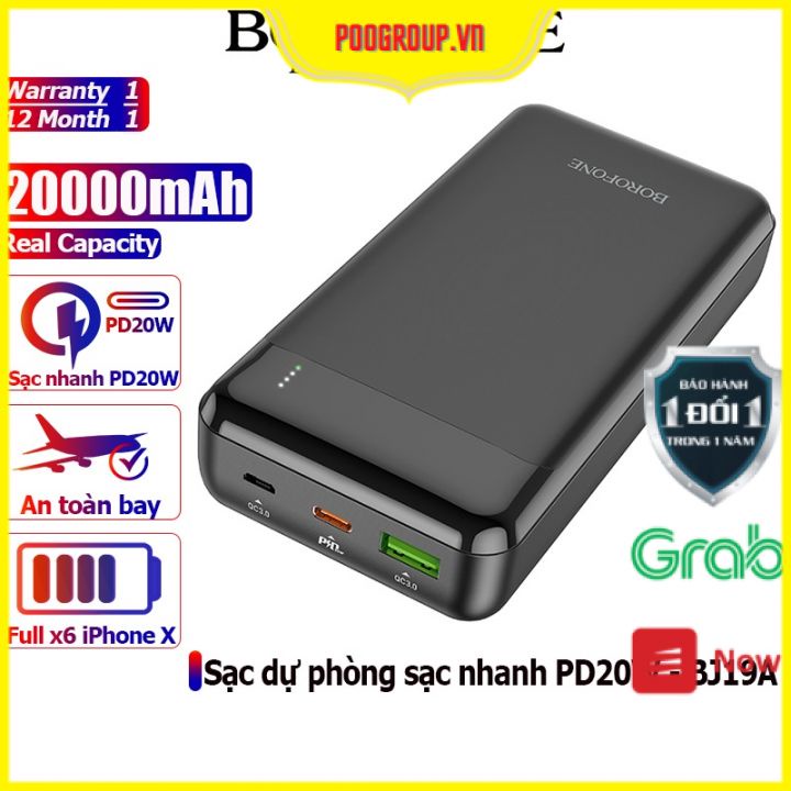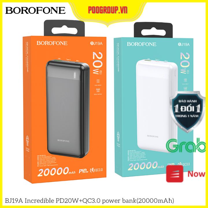 Pin Sạc Dự Phòng BOROFONE BJ19A, 20000mah, Micro USB / USB C, 1 cổng Type-C hỗ trợ sạc nhanh PD20W và 1 cổng sạc USB 18W, Đèn Led hiển thị dung lượng pin là một sản phẩm của BOROFONE đến từ Hongkong, đây là thương hiệu chuyên sản xuất các phụ kiện dành cho điện thoại với các mức giá ở tầm trung nên được rất nhiều lựa chọn và tin dùng.