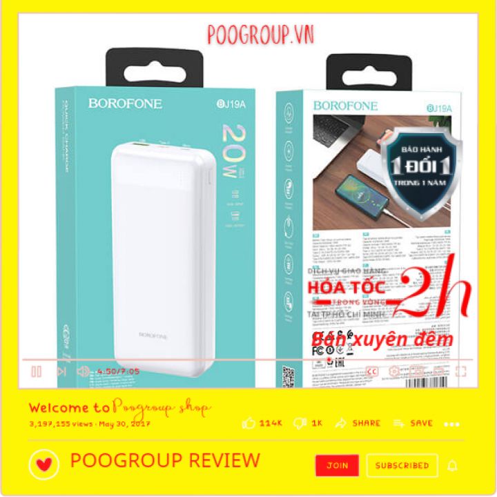 Giới thiệu Pin sạc dự phòng 20000mAh Chính Hãng BOROPHONE BJ19A sạc nhanh PD20W (cổng Type-C), có LED Báo BH Đến 12 tháng