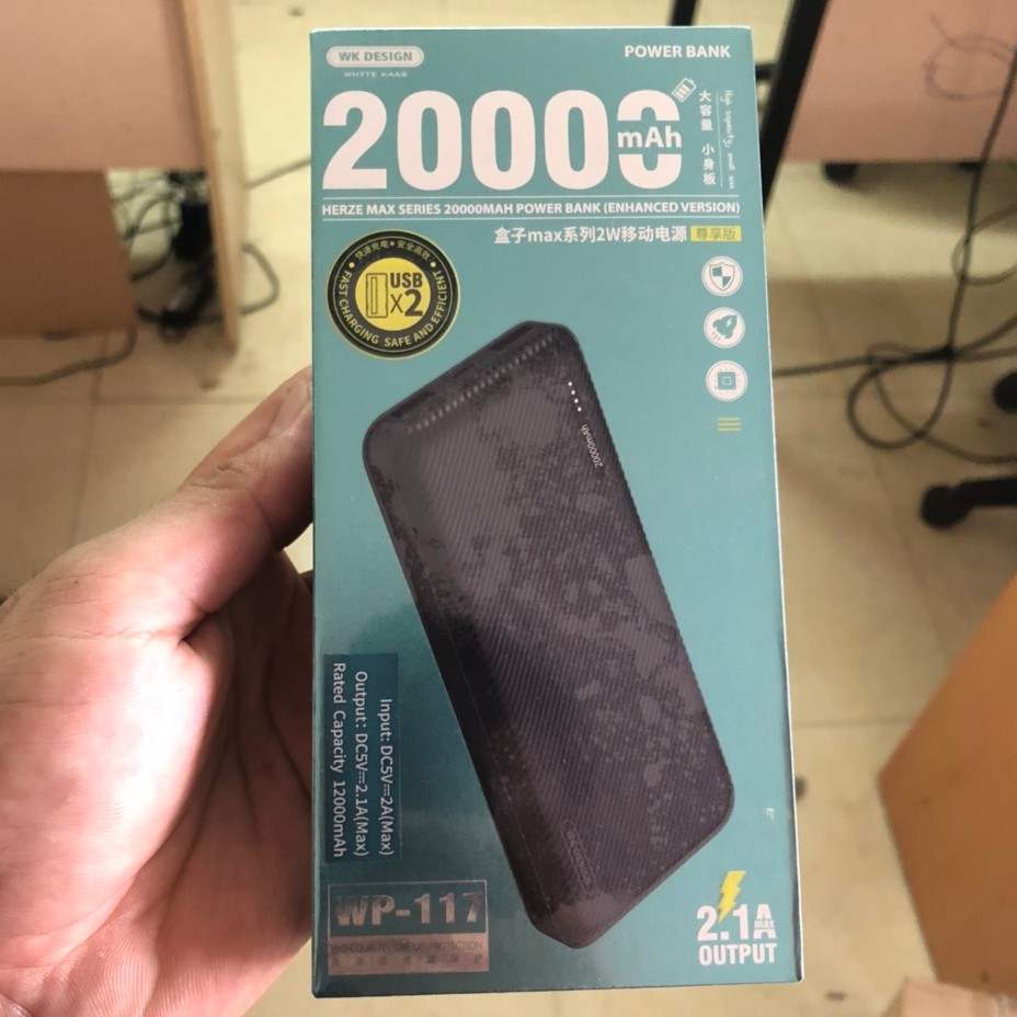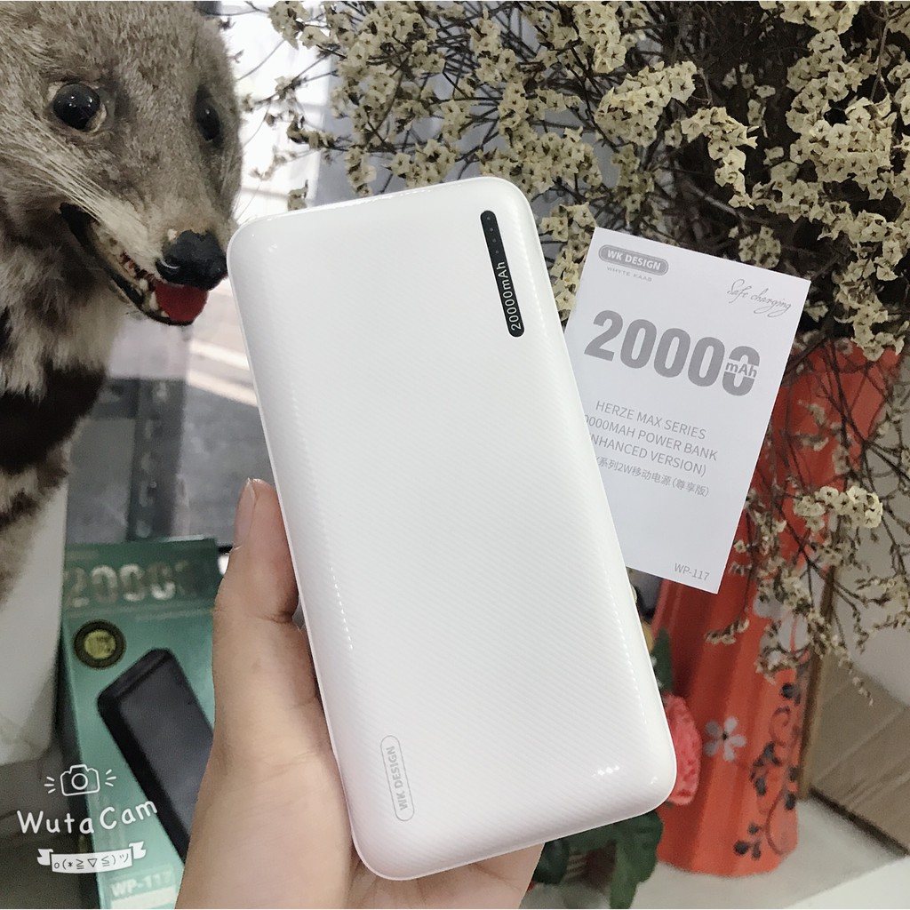 ✅ Chiếc pin sạc dự phòng 20000mAh WP-117 với dung lượng lên tới 20.000mAh chắc chắn sẽ đáp ứng tốt các nhu cầu của bạn. Không chỉ sạc được điện thoại nhiều lần mà bạn còn có thể sạc cùng lúc tới 2 thiết bị. Dung lượng 20.000mAh siêu lớn Sạc dự phòng này của WK có dung lượng pin lên đến 20.000mAh.