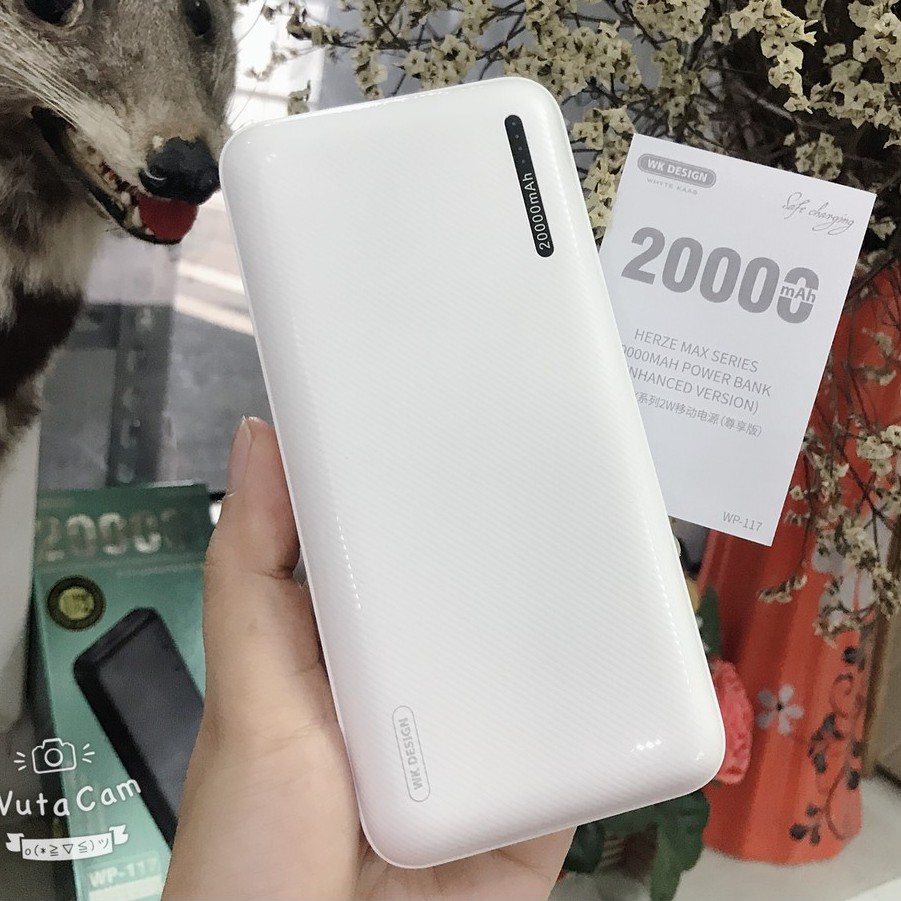 ✅ Chiếc pin sạc dự phòng 20000mAh WP-117 với dung lượng lên tới 20.000mAh chắc chắn sẽ đáp ứng tốt các nhu cầu của bạn. Không chỉ sạc được điện thoại nhiều lần mà bạn còn có thể sạc cùng lúc tới 2 thiết bị. Dung lượng 20.000mAh siêu lớn Sạc dự phòng này của WK có dung lượng pin lên đến 20.000mAh.