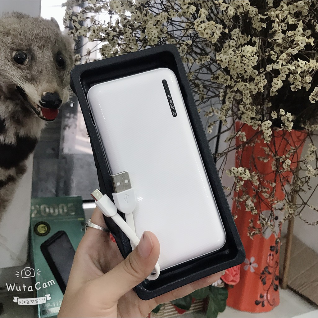 Điện Thoại & Phụ Kiện > Phụ kiện > Sạc dự phòng & Pin > Sạc dự phòng || Pin sạc dự phòng 20000mah remax với thiết kế vân sọc chống trơn 2 đầu ra giúp sạc pin dự phòng nhiều điện thoại tiện íchCòn hàng