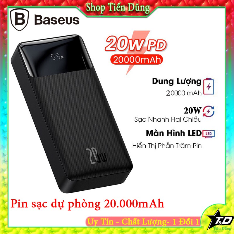 Pin sạc dự phòng 20000mAh sạc nhanh 20w Baseus QC3.0 + PD20w có đèn led hiển thị dung lượng pin