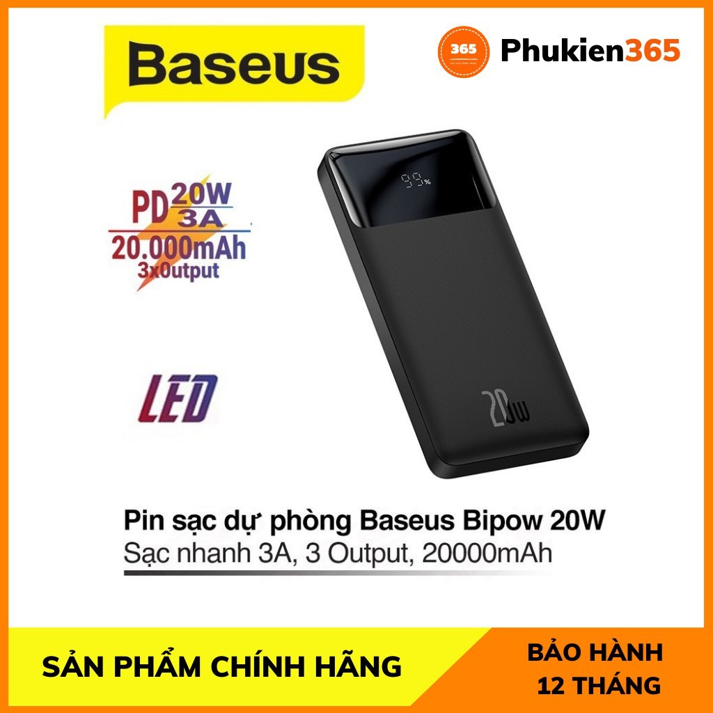 Đặc điểm sản phẩm :Sạc dự phòng Baseus Bipow 20000mAh sạc nhanh 20W,