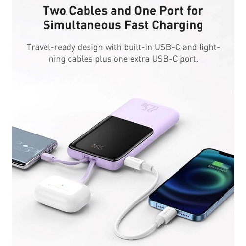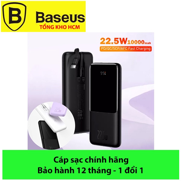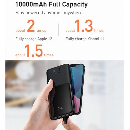 Pin sạc dự phòng 22.5W Baseus Elf Digital Display Fast Charge Power Bank 10000mAh ( tích hợp sẵn cáp Type C và iPhone )