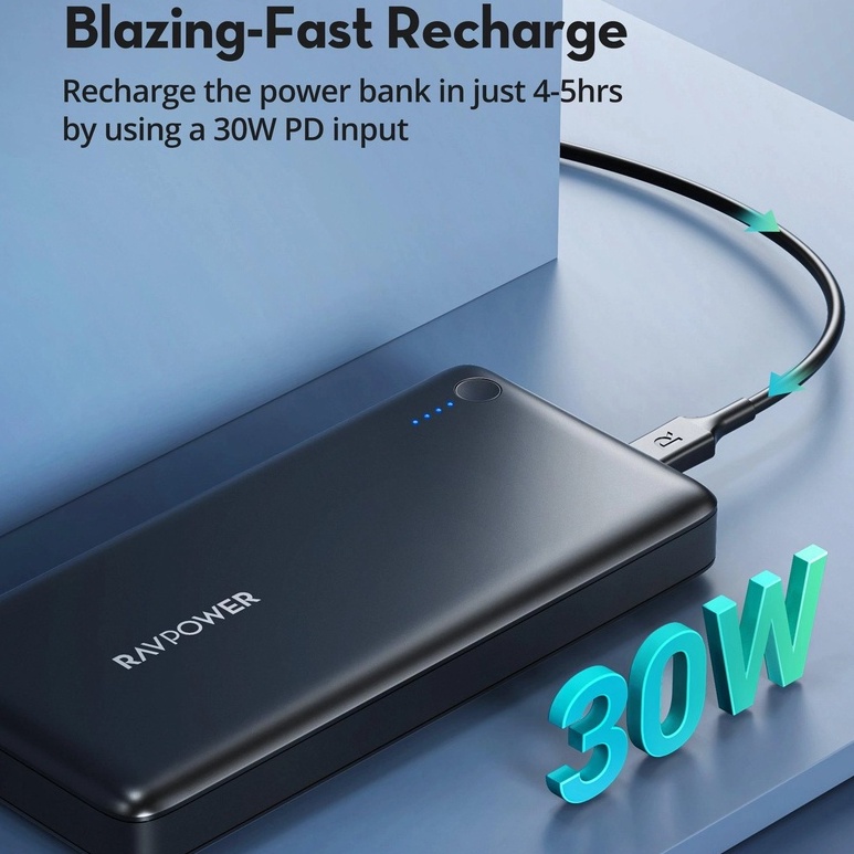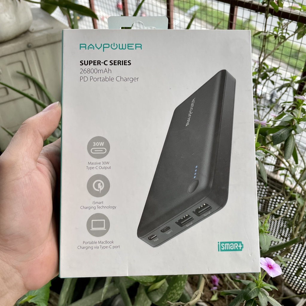Giới thiệu Pin Sạc Dự Phòng 26800mAh RAVPOWER RP-PB058 03 Cổng Sạc (01 PD 30W & 02 iSmart 2.0 17W) - Kèm 3 Dây Cáp , 1 Túi Đựng Sạc