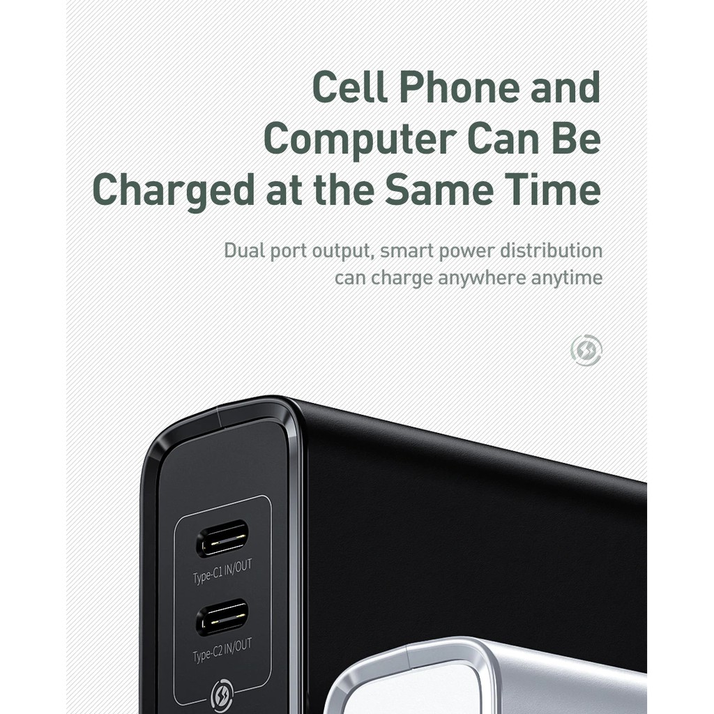 • Powerbank Mode Type-C Output: 5V/3A,9V/3A,12V/2.5A,20V/1.5A Max
