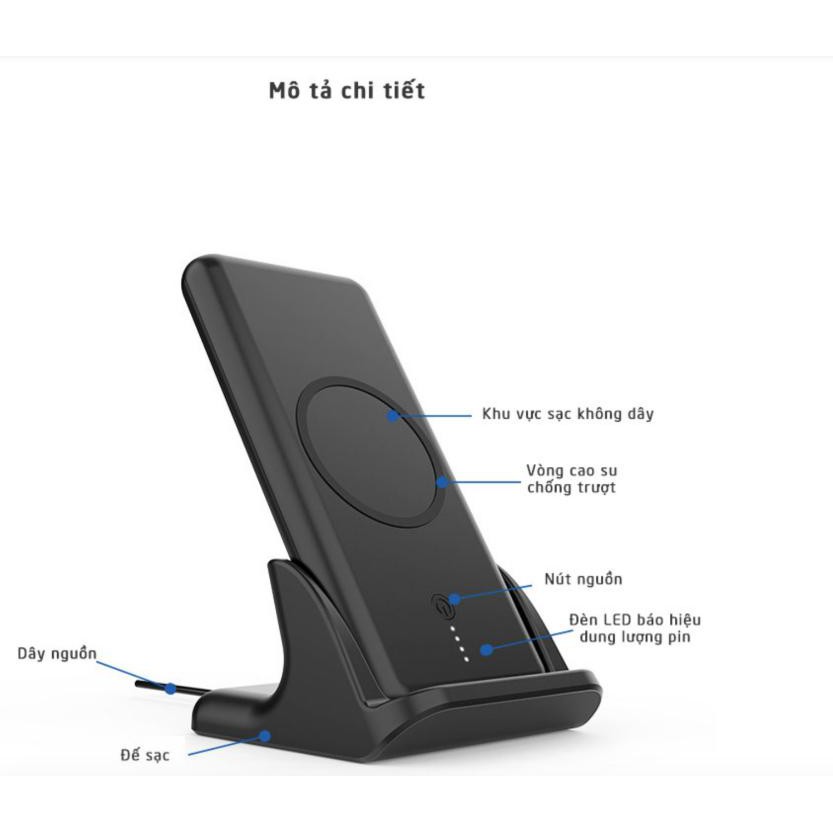Sản phẩm gồm:- Pin dự phòng sạc không dây dung lượng 10000mah và Đế giữ sạc cho pin dự phòng
