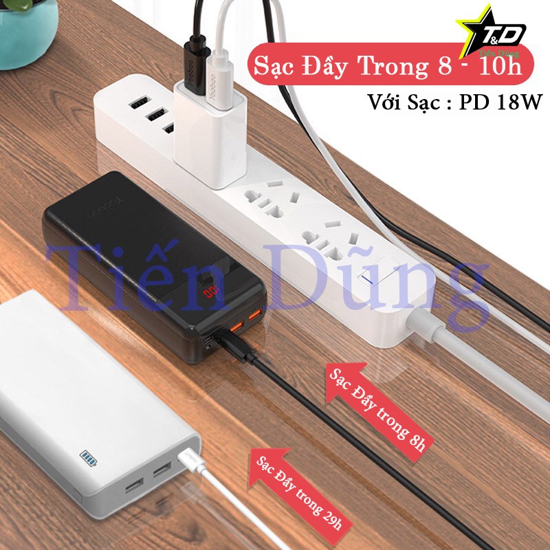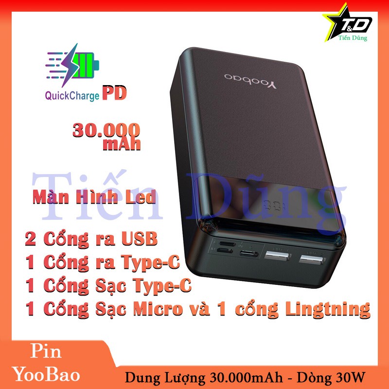 Điện Thoại & Phụ Kiện > Pin sạc dự phòng > >20000mAh || Pin sạc dự phòng 30.000mAh yoobao Công nghệ sạc nhanh 2 chiều PD3.0 (PPS) 18W; 3 cổng vào: micro- USB, Lightning, Type-CCòn hàng