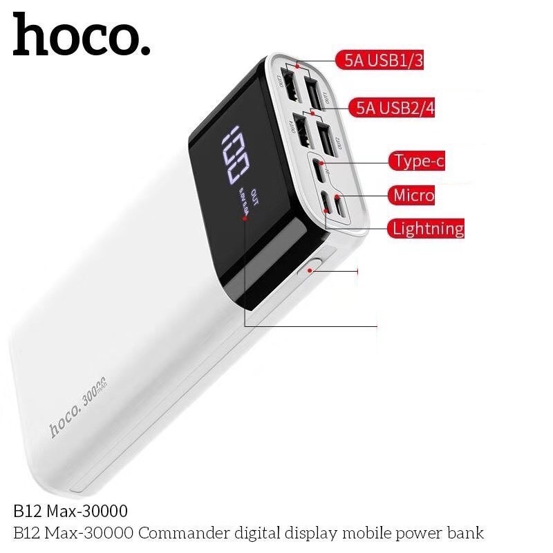 Giới thiệu ✔BẢO HÀNH 12T✔Pin sạc dự phòng Sạc nhanh 5A Max 30000mAh Hoco B12 Max 3 cổng input,4 cổng input-Cho IPHONE-Chính Hãng