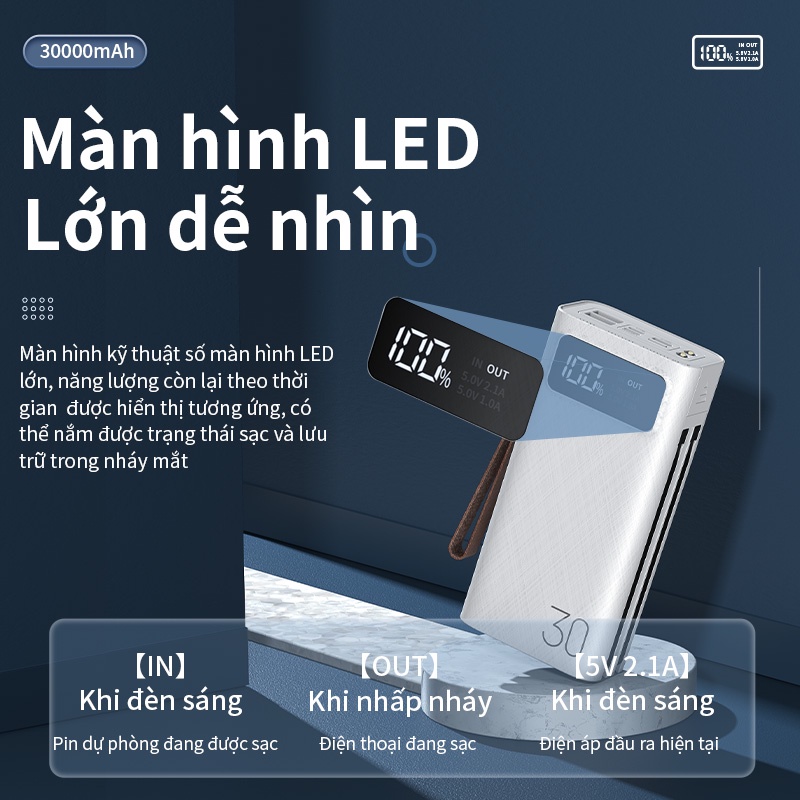 Điện Thoại & Phụ Kiện > Phụ kiện > Sạc dự phòng & Pin > Sạc dự phòng || Pin Sạc Dự Phòng 30000mah KV PT302 với Cáp sạc Giá đỡ điện thoại tích hợp Đèn pin 4 Cổng Màn hình LED Sạc nhanhCòn hàng