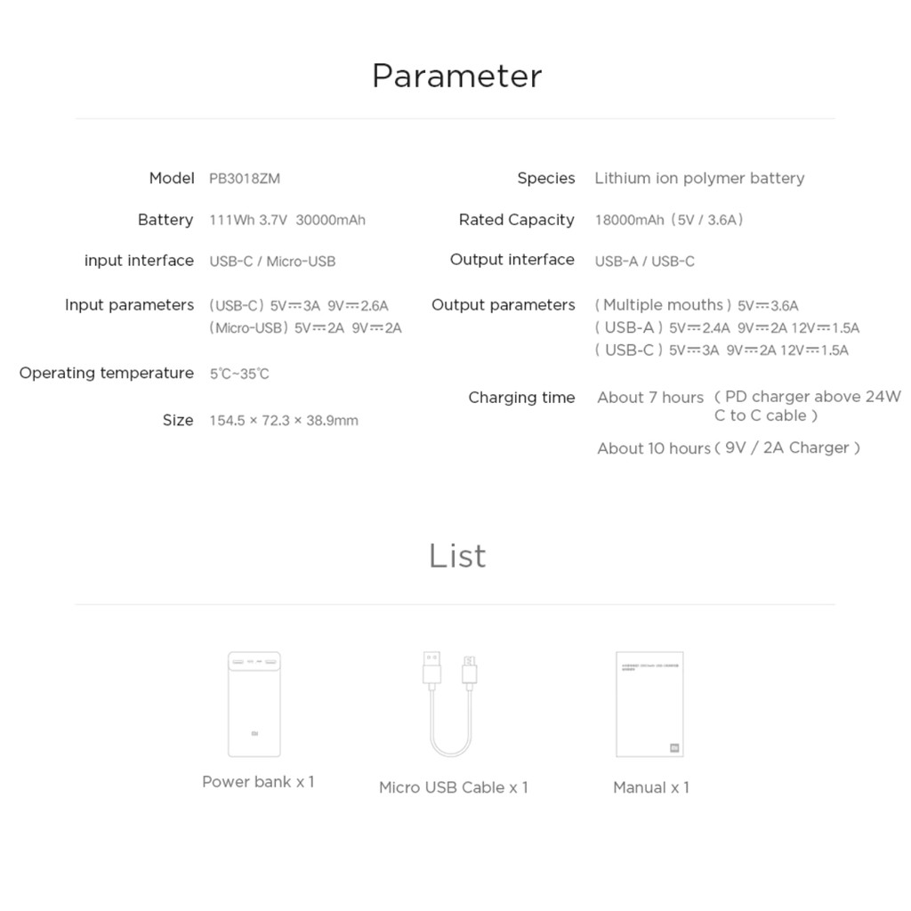 Xiaomi Power Bank 3 30000mAh (PB3018ZM)Tính năng & Thông Số Kỹ Thuật