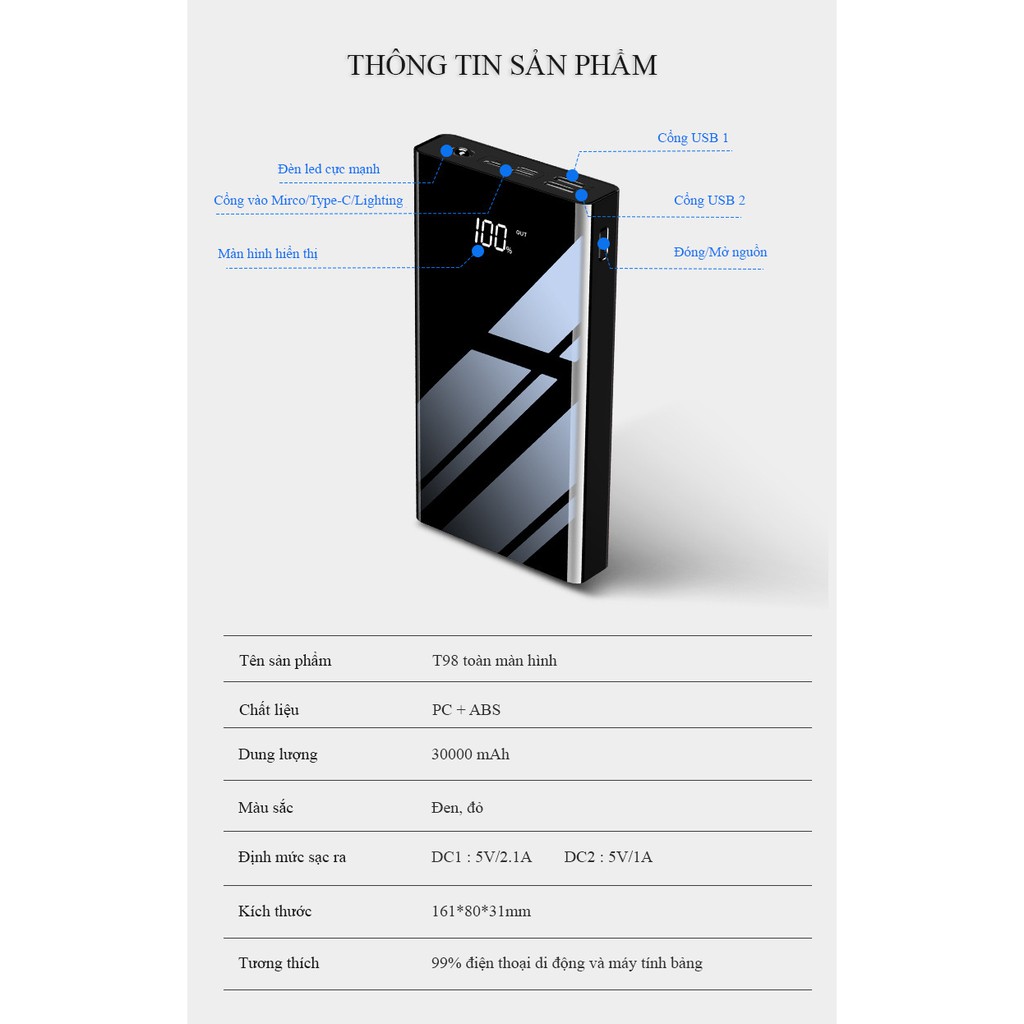 Giới thiệu Pin Sạc Dự Phòng 30000mAh Polymer 3M thích hợp dùng iPhone XiaoMi OPPO AUS VIVO mini nhỏ gọn tiện nghi cầm theo sạc nhan