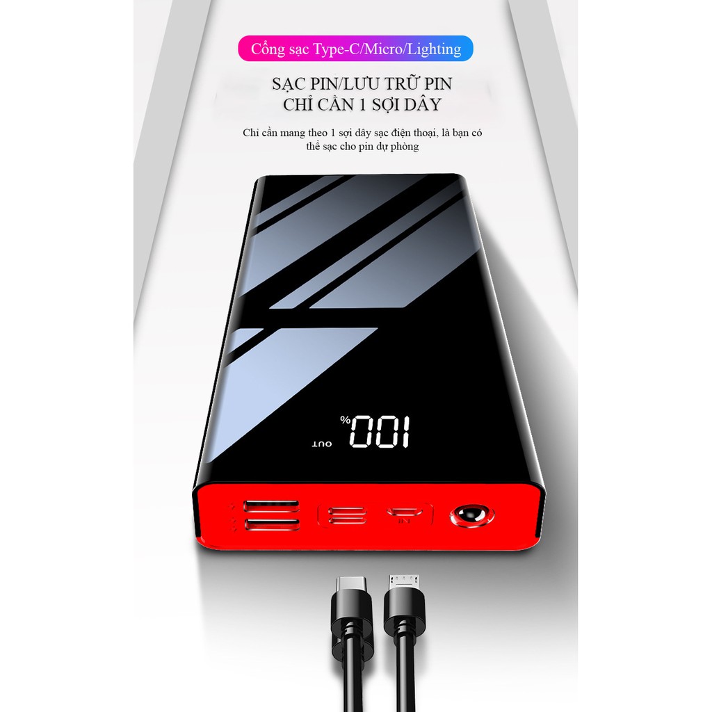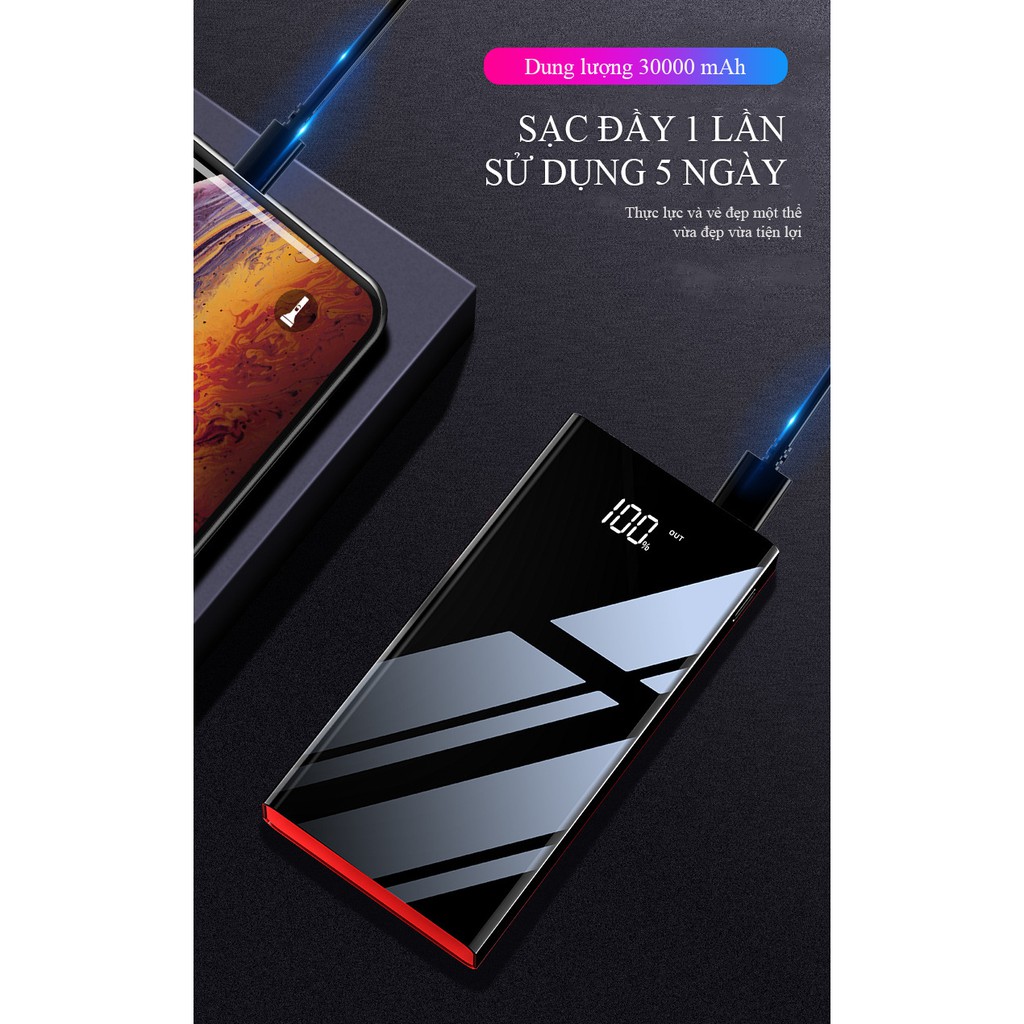 Pin Sạc Dự Phòng 30000mAh Polymer 3M thích hợp dùng iPhone XiaoMi OPPO AUS VIVO mini nhỏ gọn tiện nghi cầm theo sạc nhan